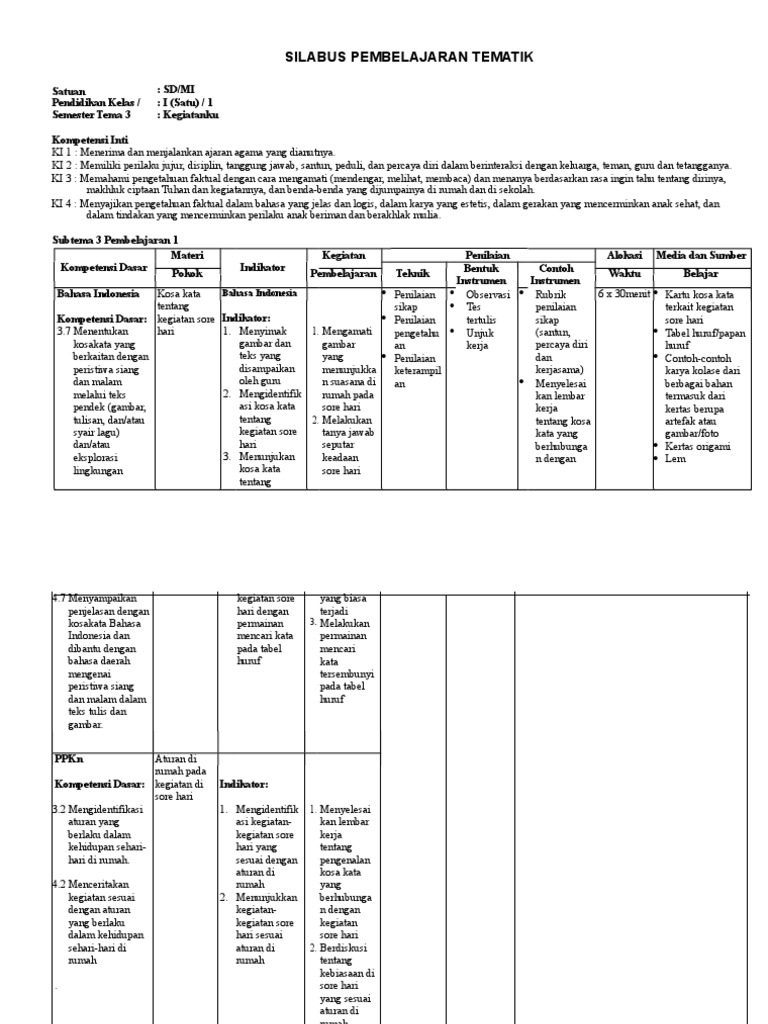Silabus Kelas 3 Tema 2 Subtema 1 / Rpp Kelas 3 Tema 4 Subtema 1 2 3 4 Revisi Terbaru / Silabus kelas 3 semester 1.